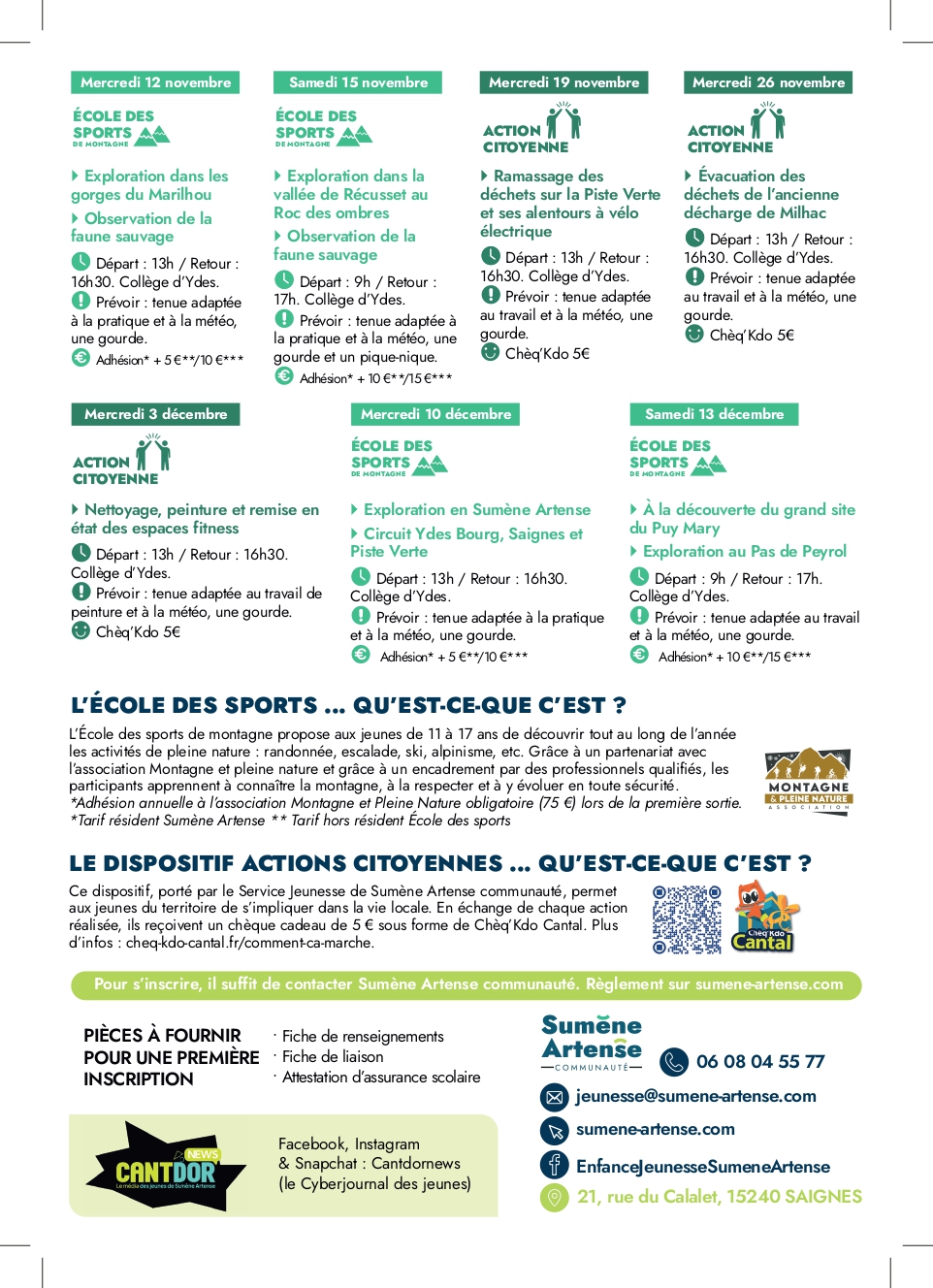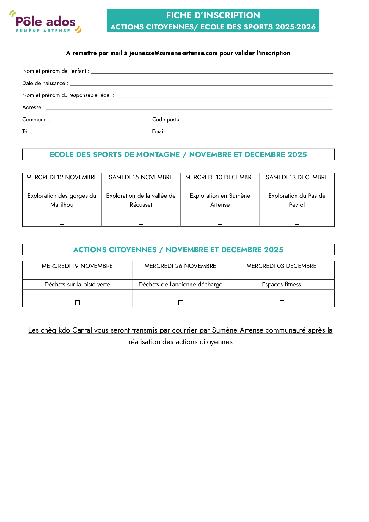 Actions Citoyennes et Ecole des Sports les Mercredis - Novembre/Décembre 2025