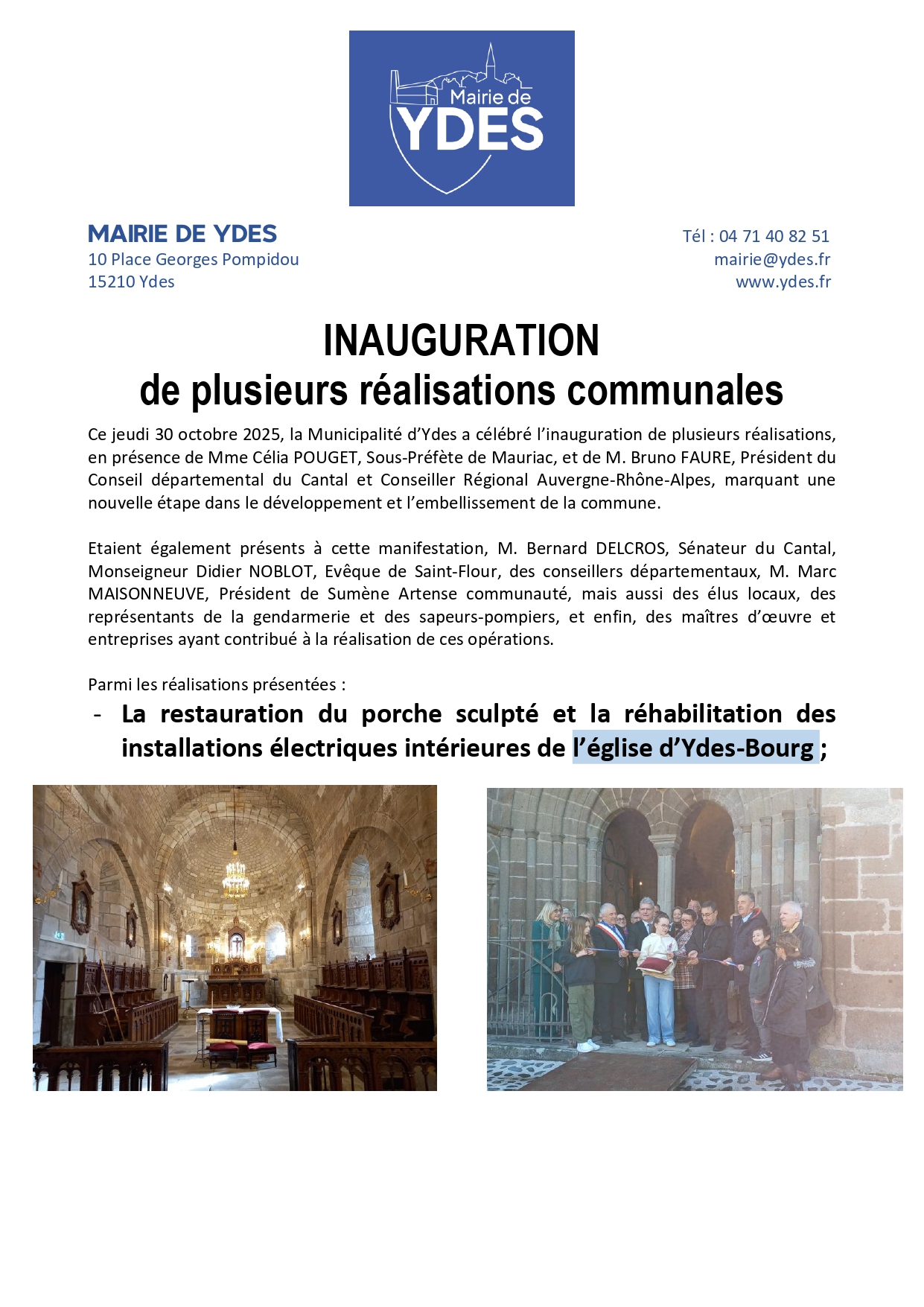 Jeudi 30 octobre 2025 - Inauguration de réalisations communales