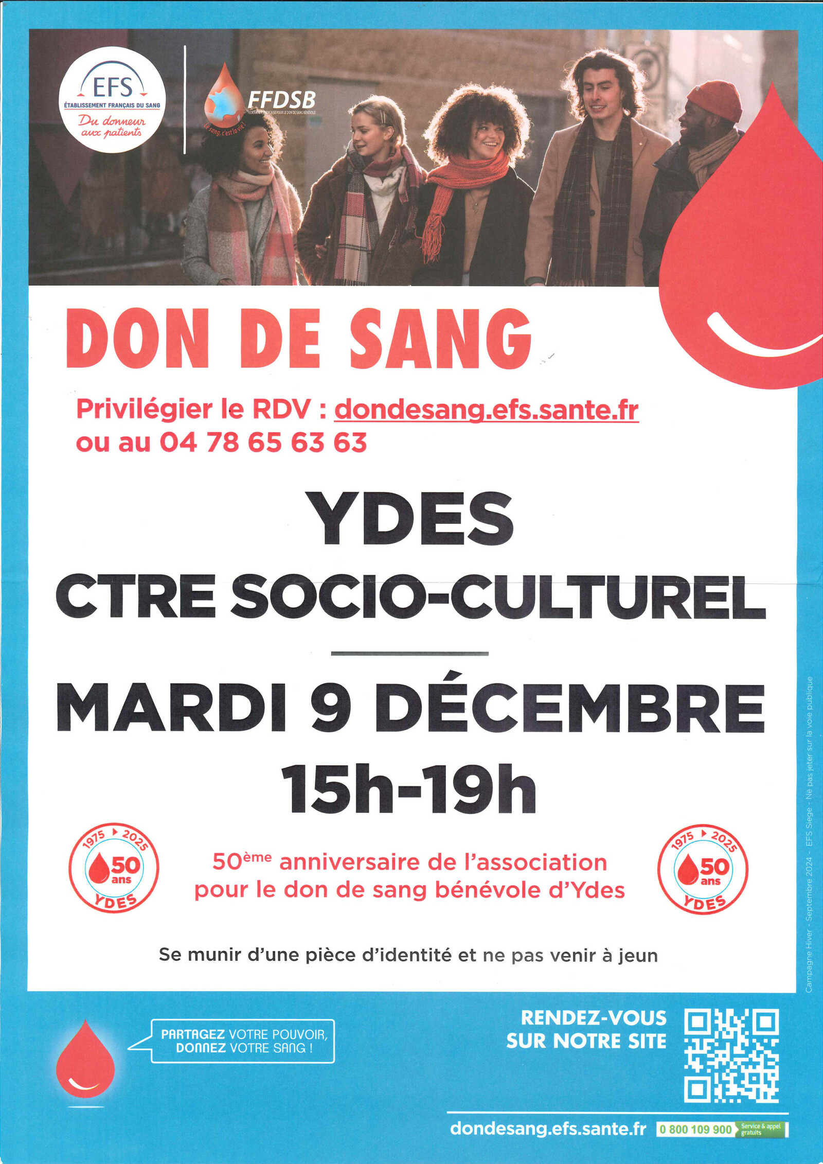 Collecte de Sang à YDES - Mardi 09 Décembre 2025