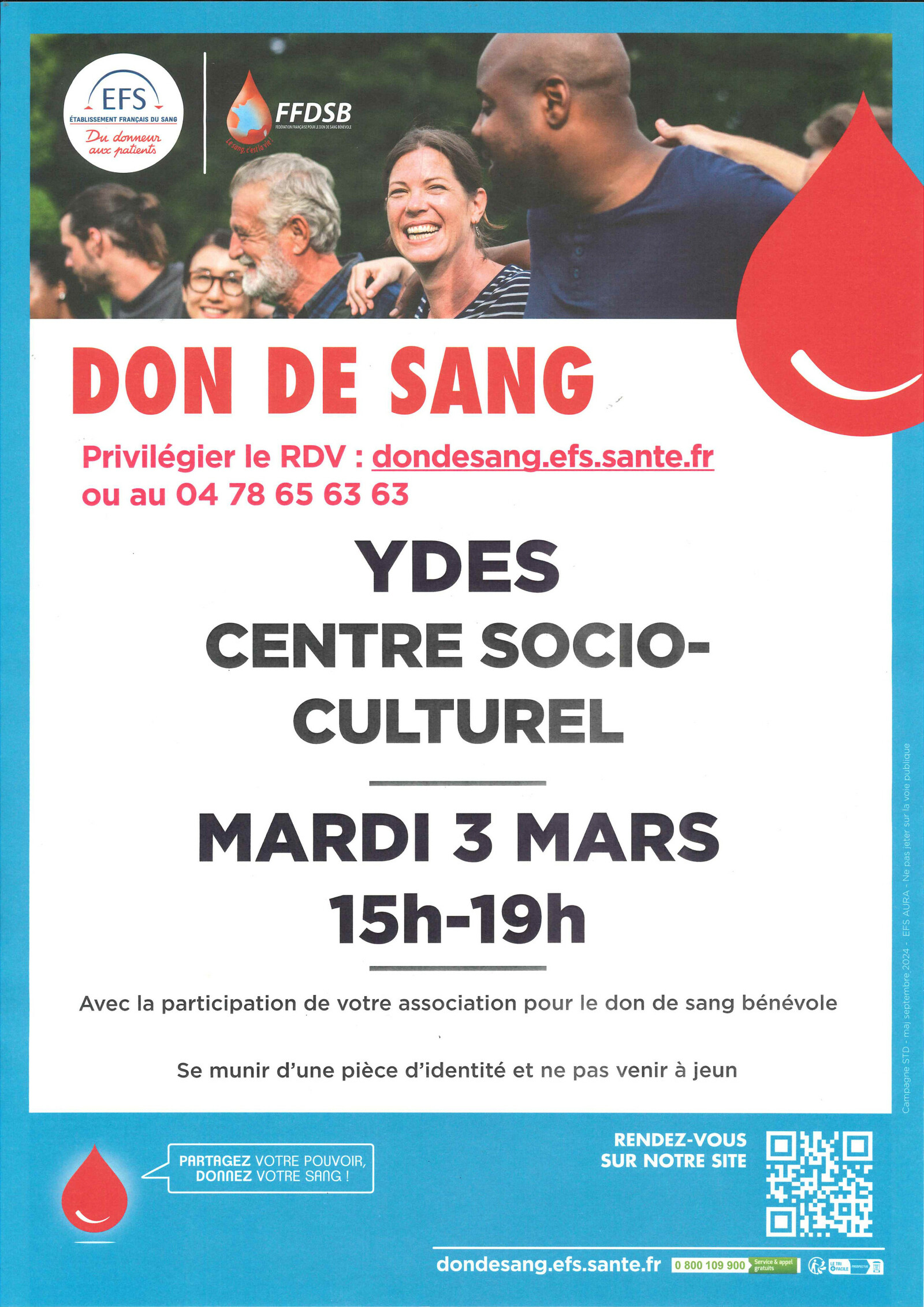 Collecte de sang à Ydes Mardi 03 Mars 2026