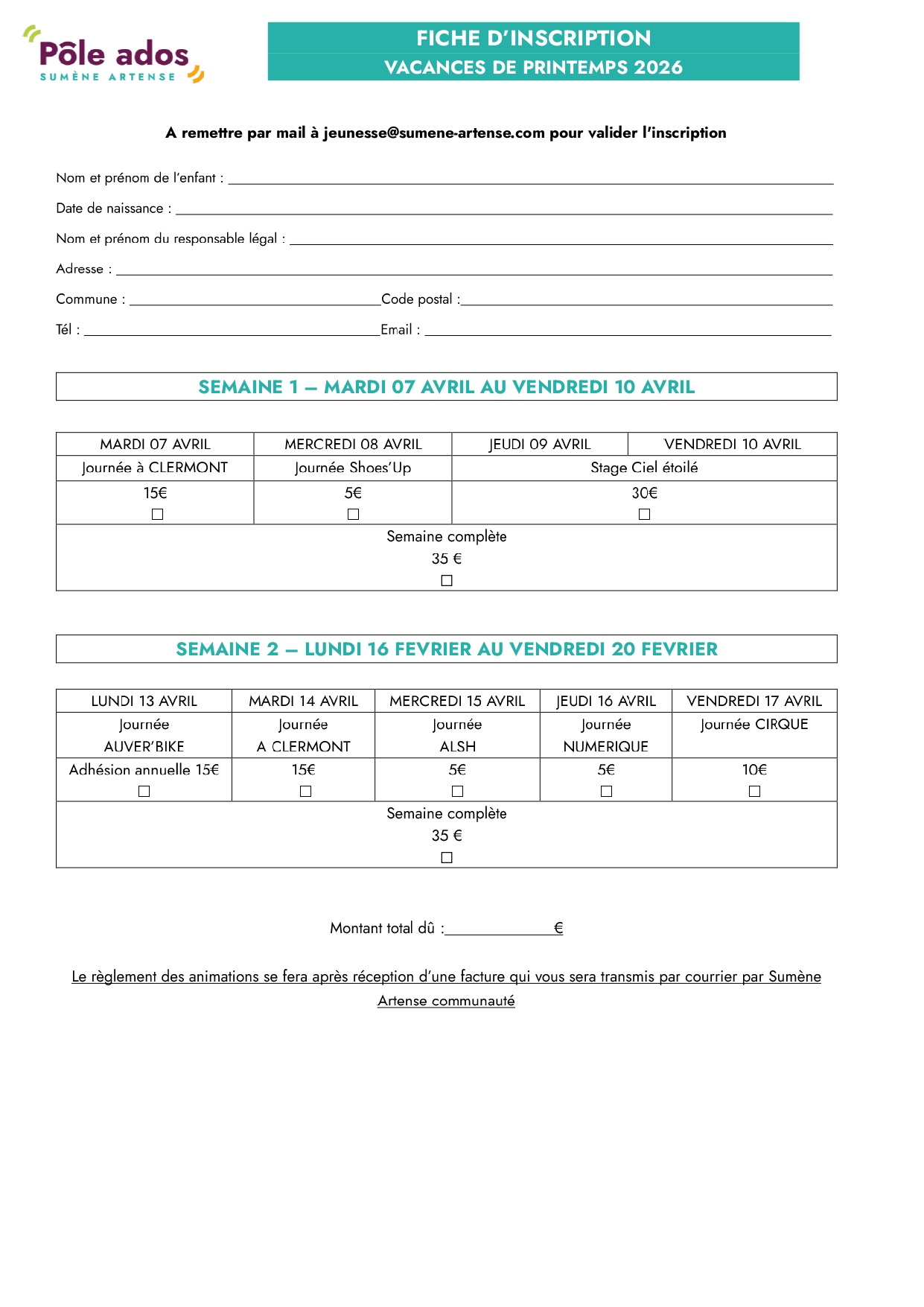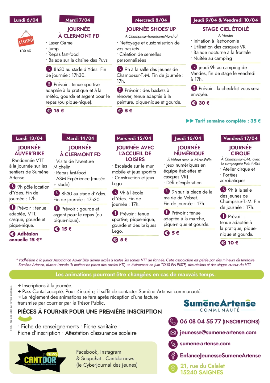 Vacances de Pâques - Programme Animations ADOS